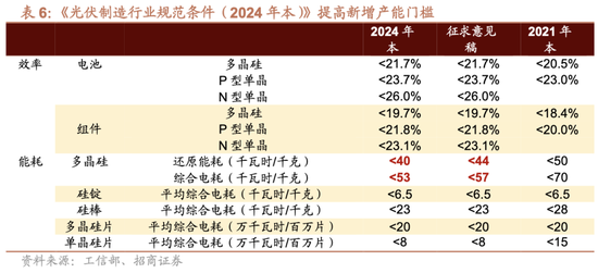 提高行业准入门槛主要是通过设置硬性技术、环保、能耗、安全等标准,倒逼企业进行技术升级、否则无法扩产。举例来看,2024年11月,工信部发布《光伏制造行业规范条件(2024年本)》和《光伏制造行业规范公告管理办法(2024年本)》,对光伏行业新增产能建设提出了更加明确的要求。不仅相较于2021年本更加严格,也较7月征求意见稿大幅提高新增产能进入门槛。