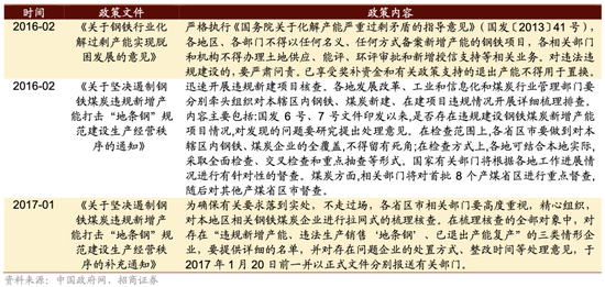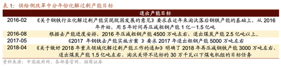 此前供给侧改革期间,针对产能严重过剩的行业曾使用过设置化解目标并分解至地方这一重要化解手段,针对的行业主要为煤炭、钢铁。2016年发布的《关于钢铁行业化解过剩产能实现脱困发展的意见》要求从2016年开始,用5年时间再压减粗钢产能1亿—1.5亿吨。具体到年份而言,2016-2018年分别设置了压减粗钢产能4500、5000、3000万吨的去产能目标。