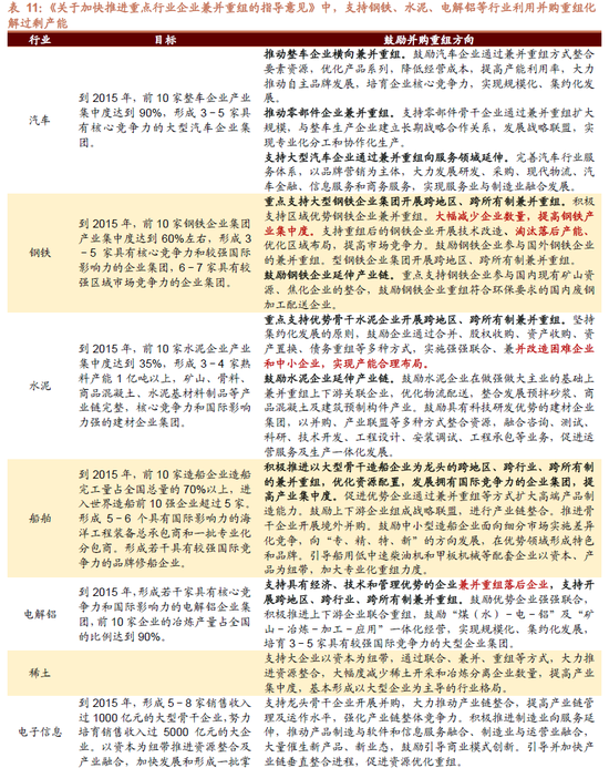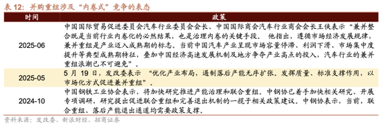 推动并购重组也是化解产能结构性问题的一大重要手段:从2010年首个高级别支持并购重组的意见出台开始,支持化解过剩产能就已成为并购重组的一大主要目的。本轮整治“内卷式”竞争再提并购重组,从具体行业表态来看,钢铁、新能源汽车有相关表态。
