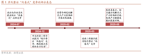 自2024年7月政治局会议首提“强化行业自律,防止‘内卷式’恶性竞争”后,整治“内卷式”竞争成为今年政府工作的一大重点,被写入政府工作报告。5月发改委再次提及整治“内卷式”竞争,并提及了一系列措施,标本兼治化解重点产业结构性矛盾,促进产业健康发展和提质升级。